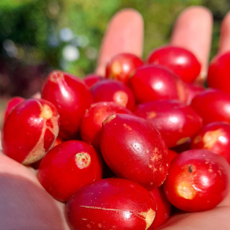Die tropical pears, die diesem Kaffee seinen Namen geben, wachsen direkt bei Ben auf der Finca Idealista. Sie sind ein fester Bestandteil der Farm und spielen eine zentrale Rolle im gesamten Processing. Die Birnen sind etwas ganz Besonderes: vollreif, intensiv aromatisch und farblich fast schon regenbogenartig – von Grün- und Gelbtönen bis hin zu rötlichen Nuancen.